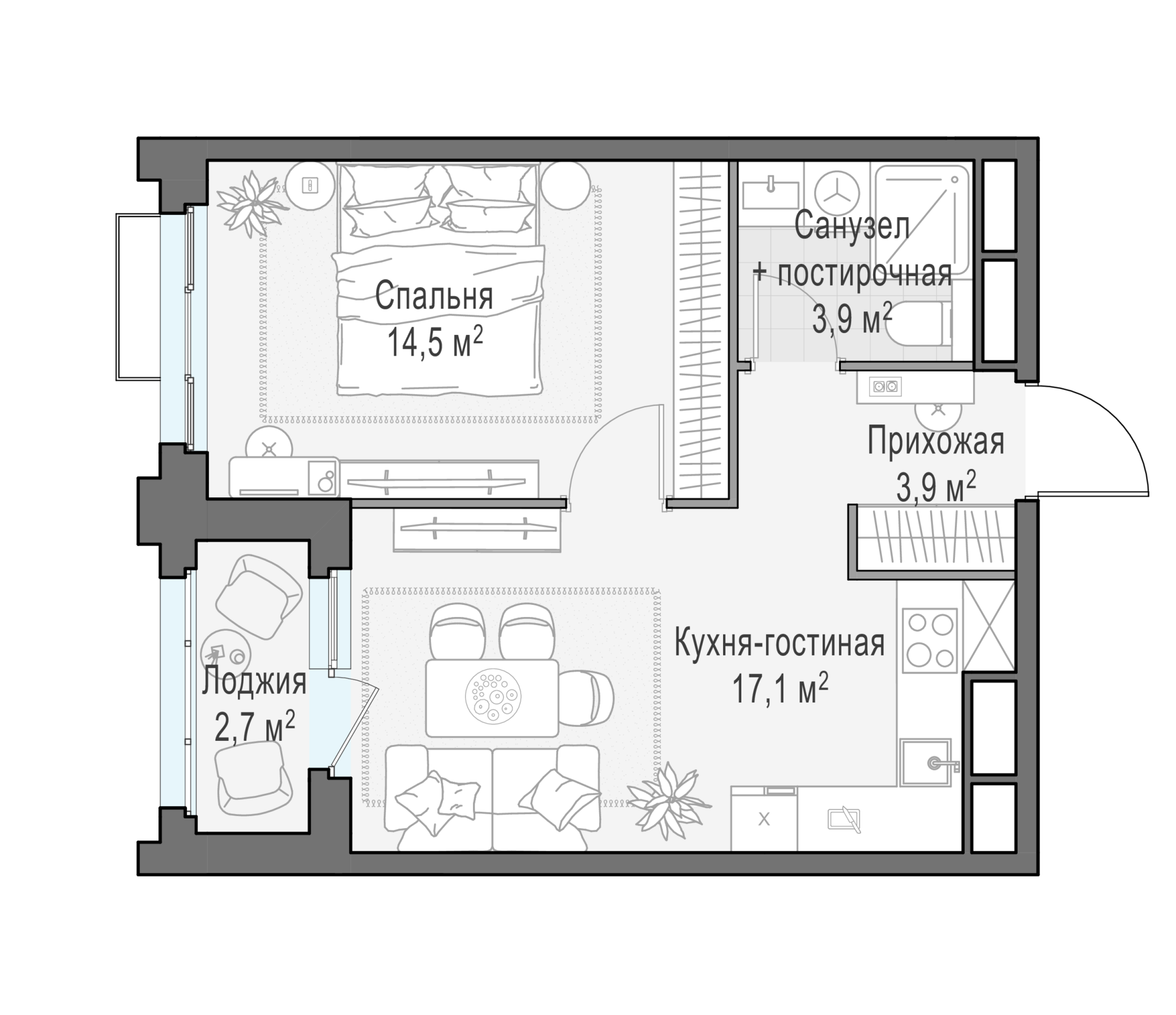 Представленные планировочные решения носят иллюстративный характер. Застройщик передаёт объект с планировкой, указанной в договоре участия в долевом строительстве. Любая перепланировка должна соответствовать требованиям государственных органов.