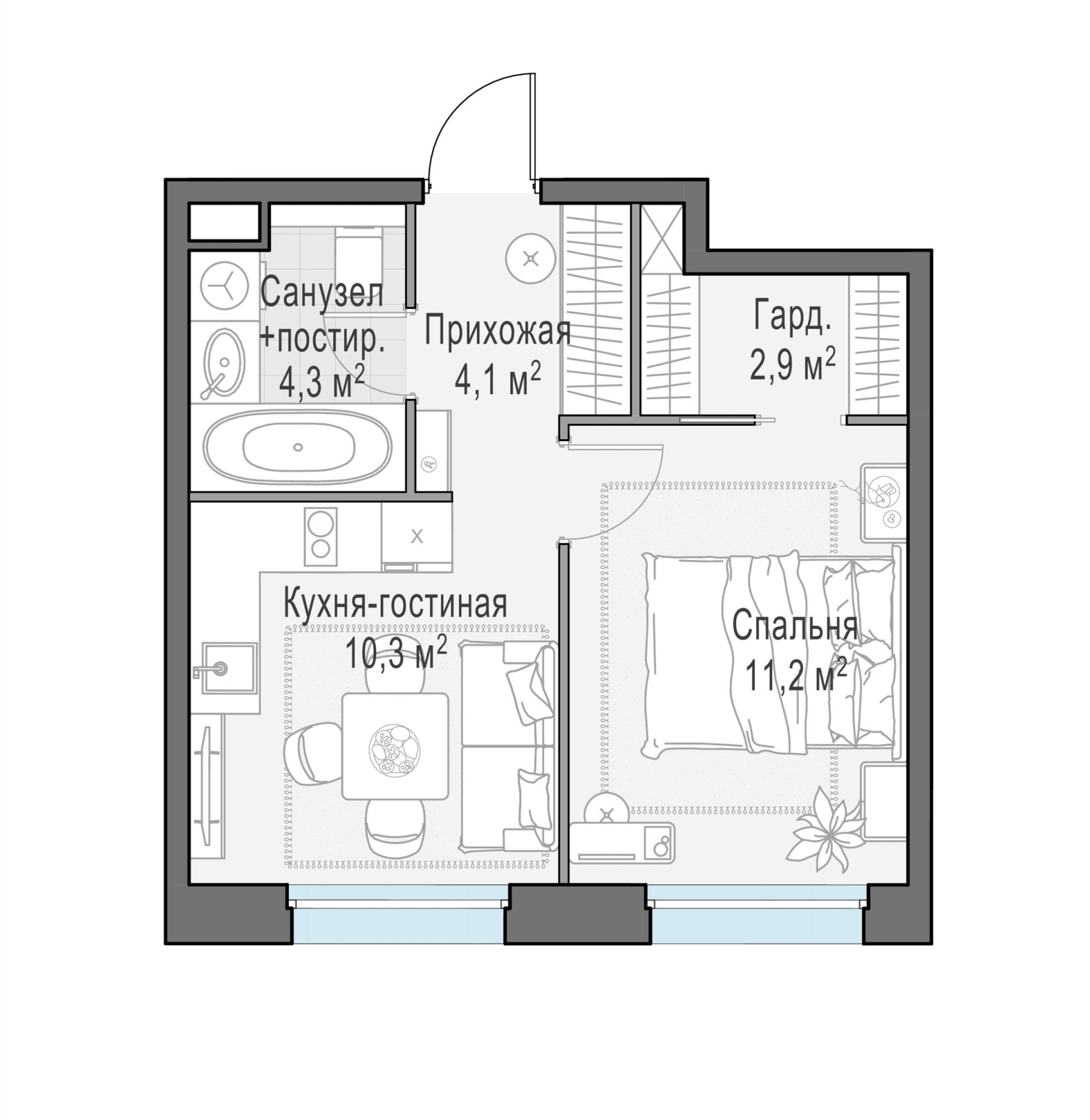 Представленные планировочные решения носят иллюстративный характер. Застройщик передаёт объект с планировкой, указанной в договоре участия в долевом строительстве. Любая перепланировка должна соответствовать требованиям государственных органов.