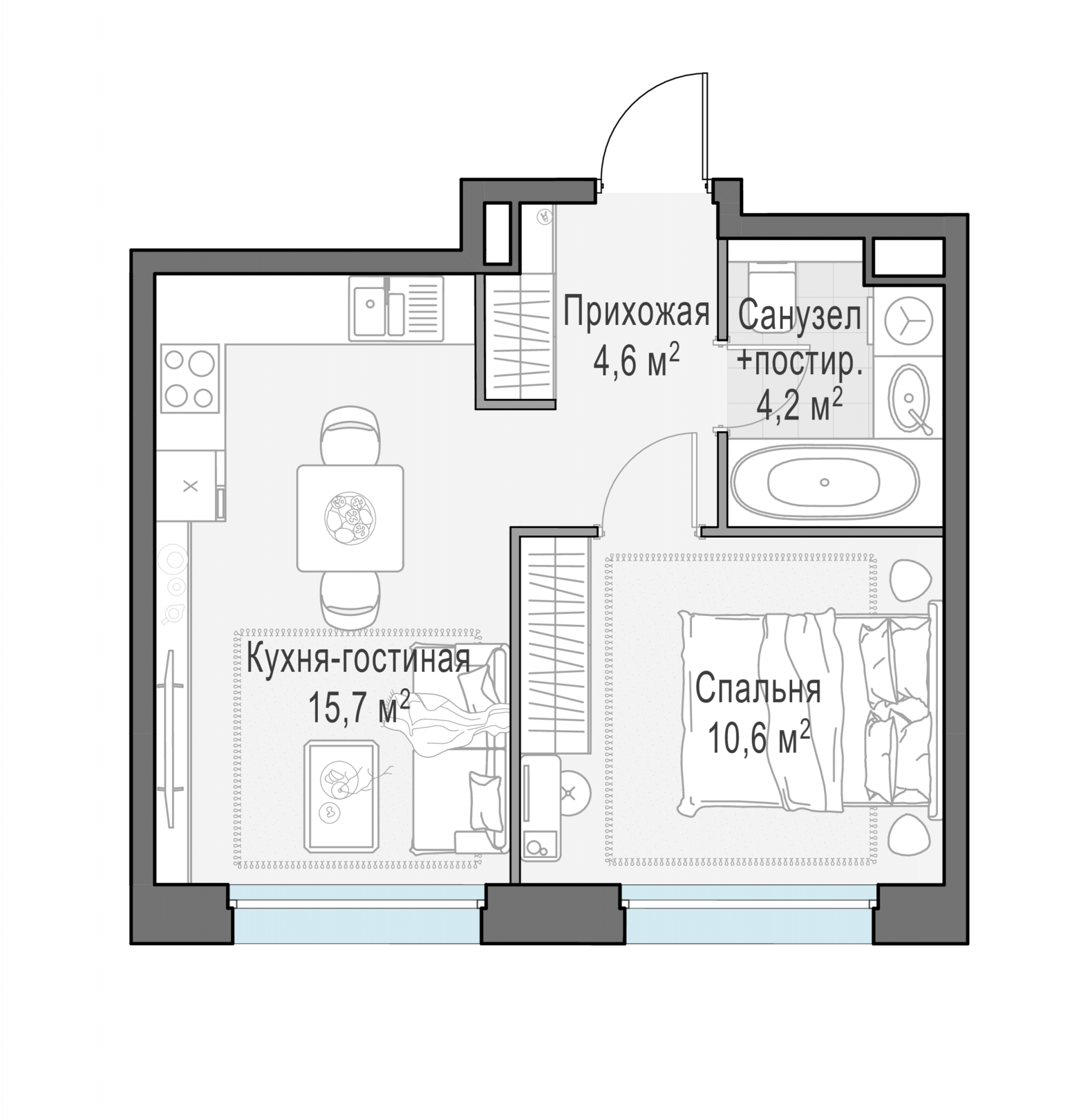Представленные планировочные решения носят иллюстративный характер. Застройщик передаёт объект с планировкой, указанной в договоре участия в долевом строительстве. Любая перепланировка должна соответствовать требованиям государственных органов.