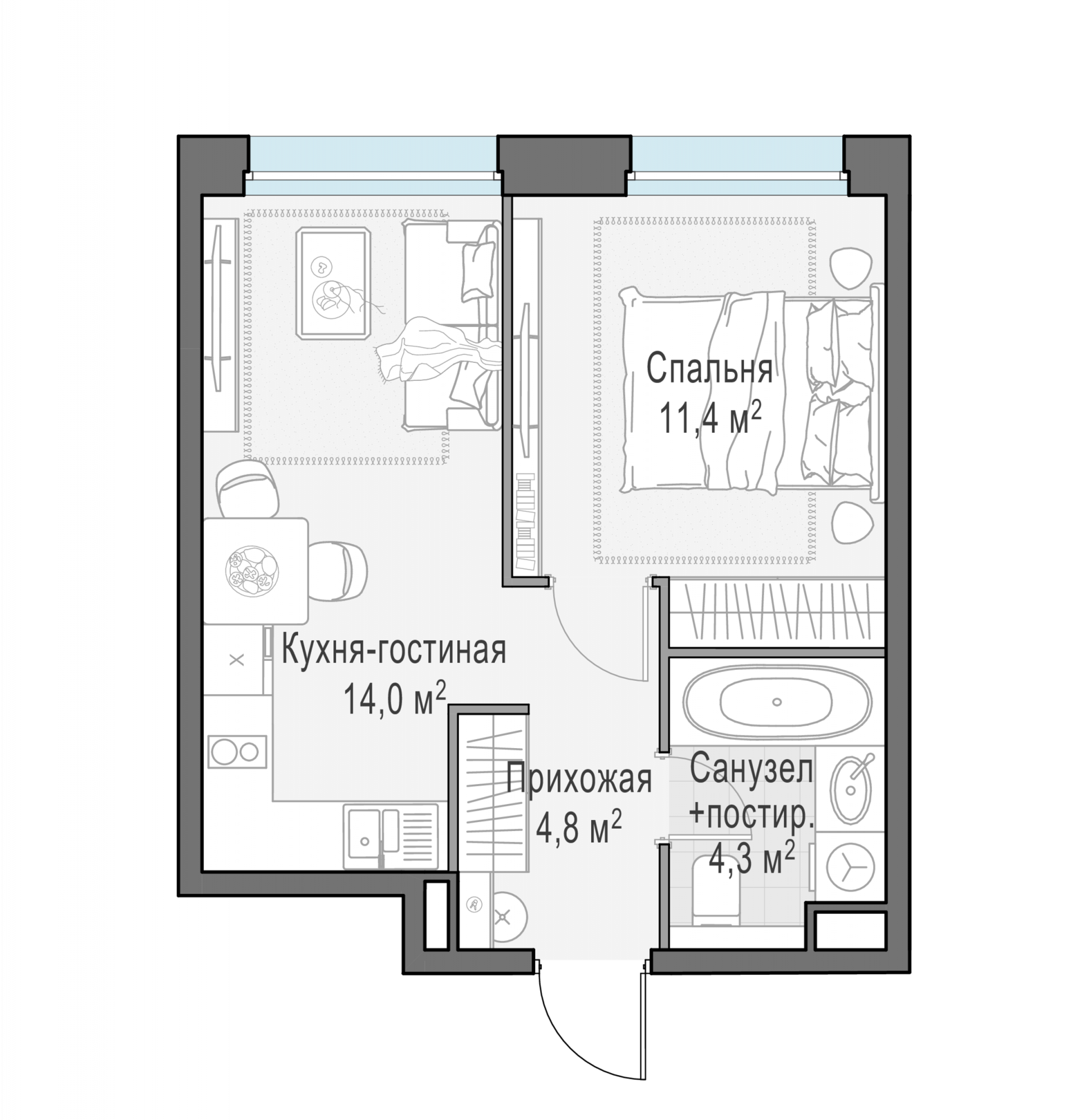 Представленные планировочные решения носят иллюстративный характер. Застройщик передаёт объект с планировкой, указанной в договоре участия в долевом строительстве. Любая перепланировка должна соответствовать требованиям государственных органов.