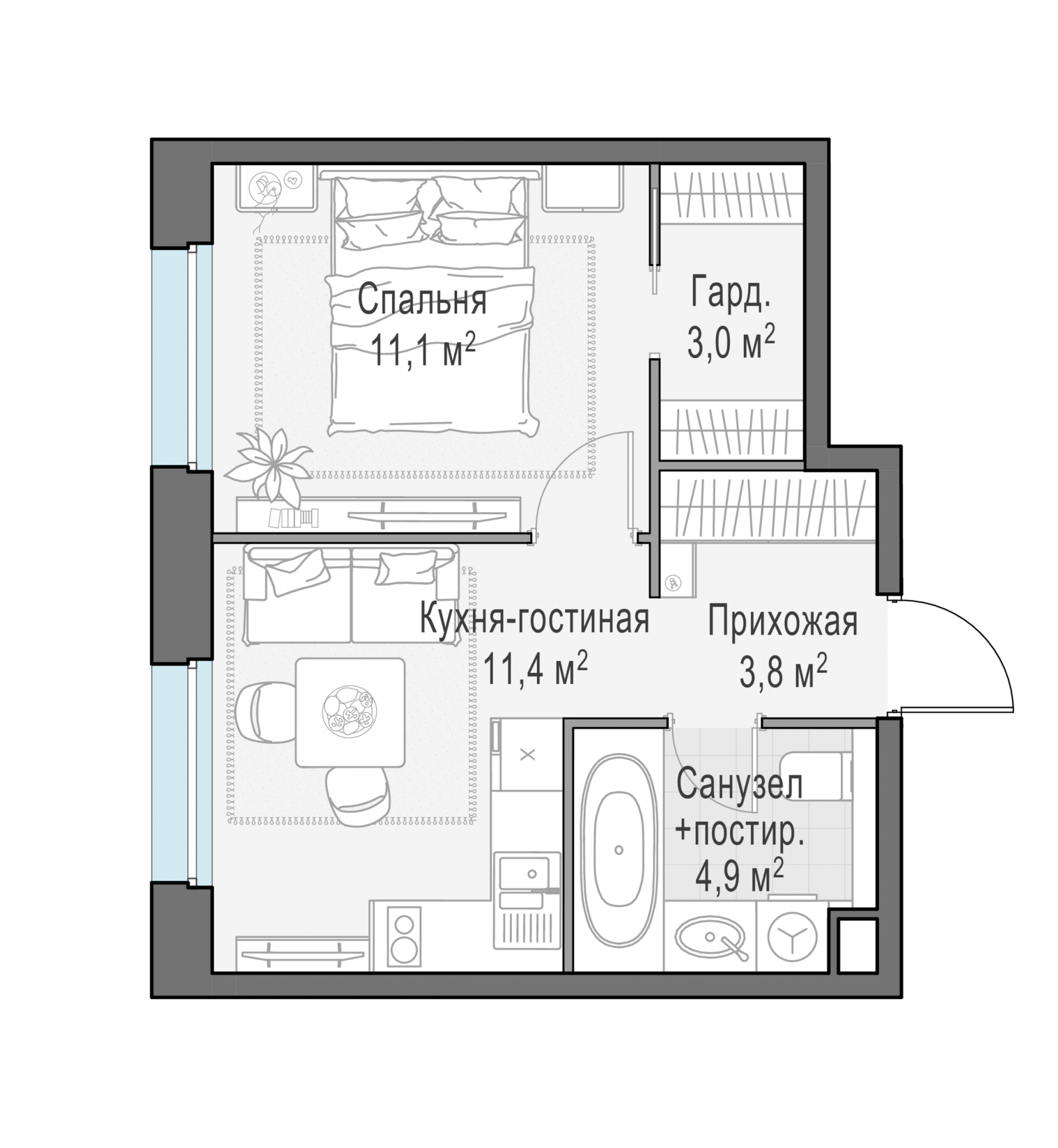 Представленные планировочные решения носят иллюстративный характер. Застройщик передаёт объект с планировкой, указанной в договоре участия в долевом строительстве. Любая перепланировка должна соответствовать требованиям государственных органов.