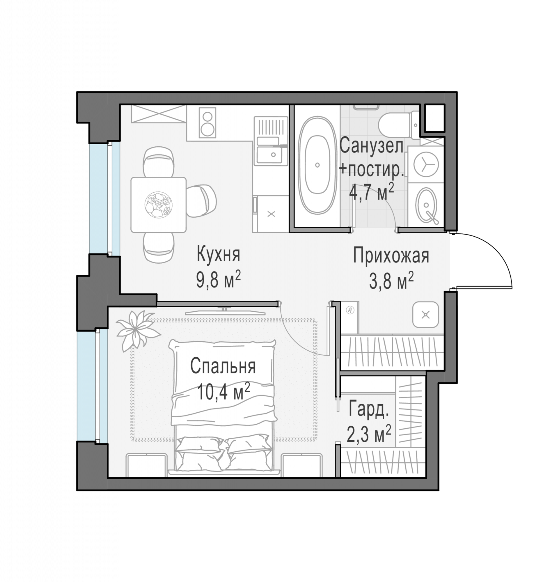 Представленные планировочные решения носят иллюстративный характер. Застройщик передаёт объект с планировкой, указанной в договоре участия в долевом строительстве. Любая перепланировка должна соответствовать требованиям государственных органов.