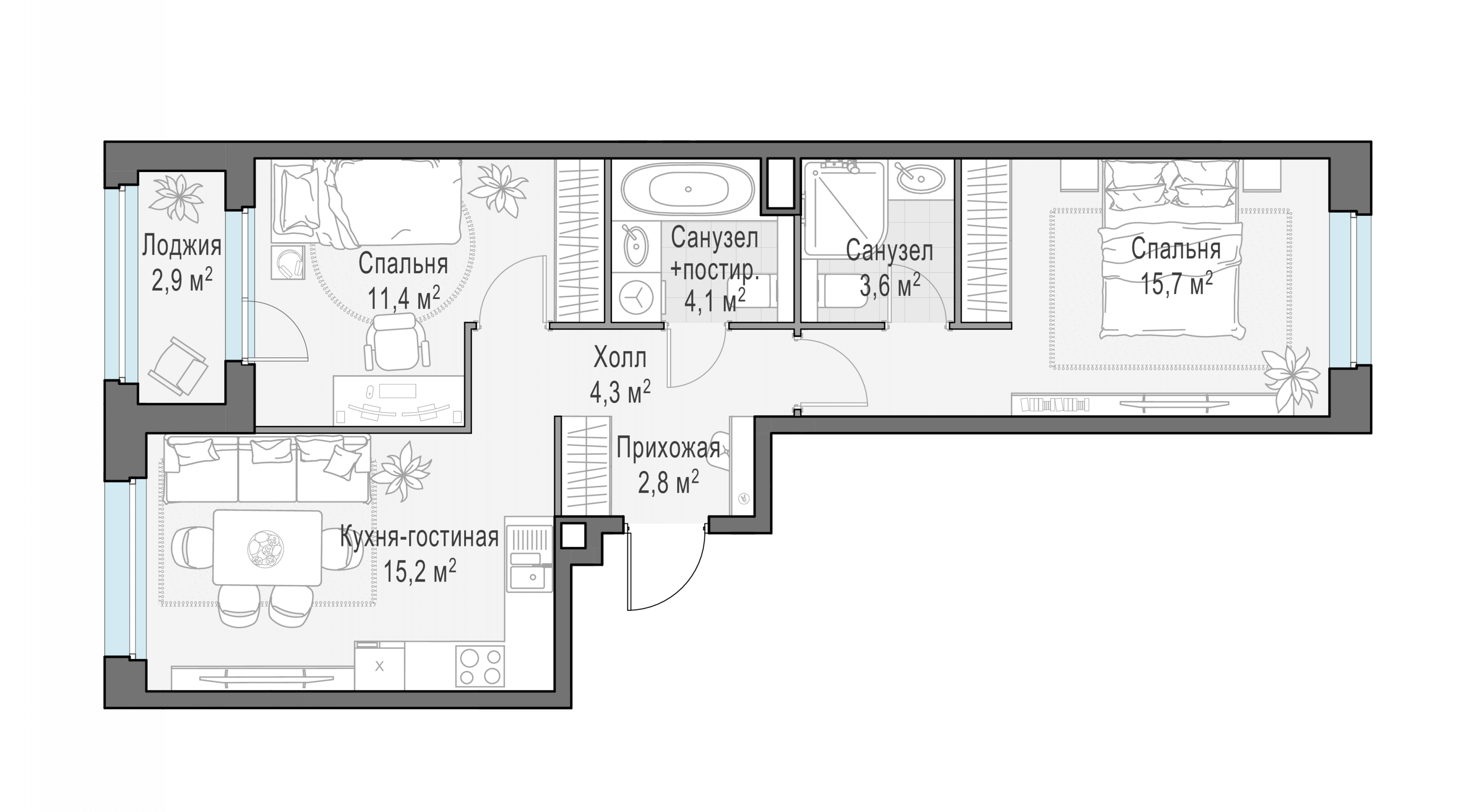 Представленные планировочные решения носят иллюстративный характер. Застройщик передаёт объект с планировкой, указанной в договоре участия в долевом строительстве. Любая перепланировка должна соответствовать требованиям государственных органов.