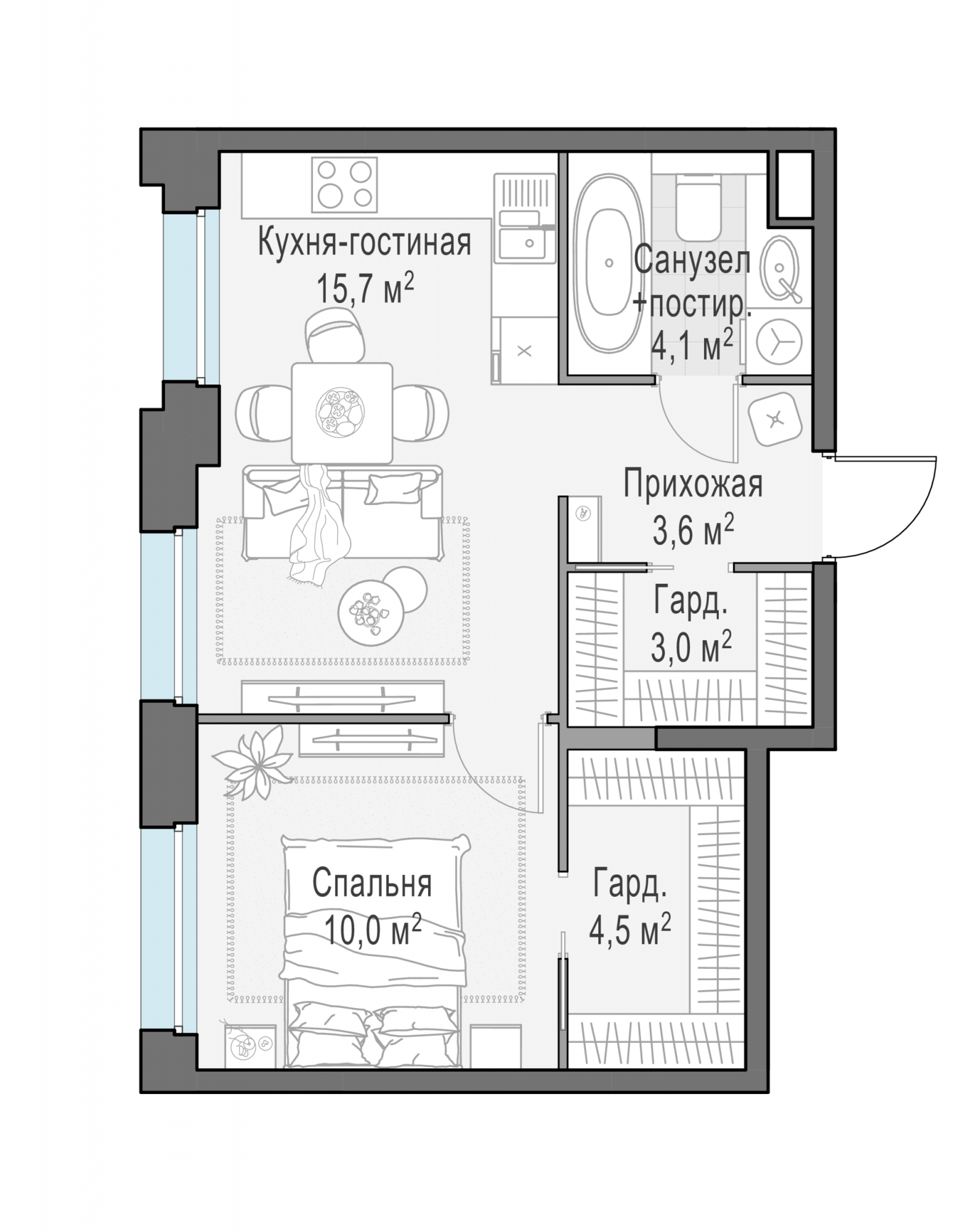 Представленные планировочные решения носят иллюстративный характер. Застройщик передаёт объект с планировкой, указанной в договоре участия в долевом строительстве. Любая перепланировка должна соответствовать требованиям государственных органов.