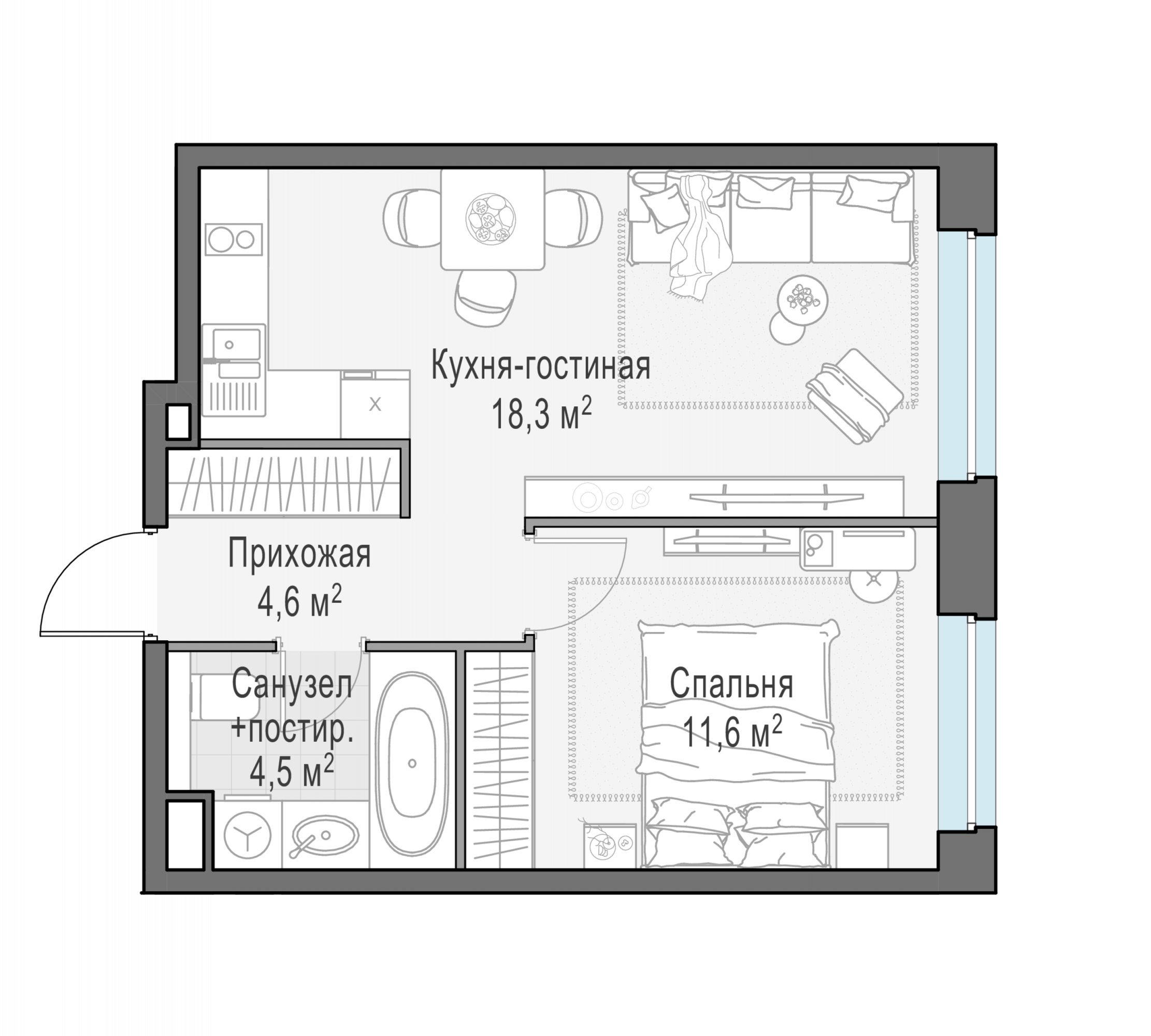 Представленные планировочные решения носят иллюстративный характер. Застройщик передаёт объект с планировкой, указанной в договоре участия в долевом строительстве. Любая перепланировка должна соответствовать требованиям государственных органов.