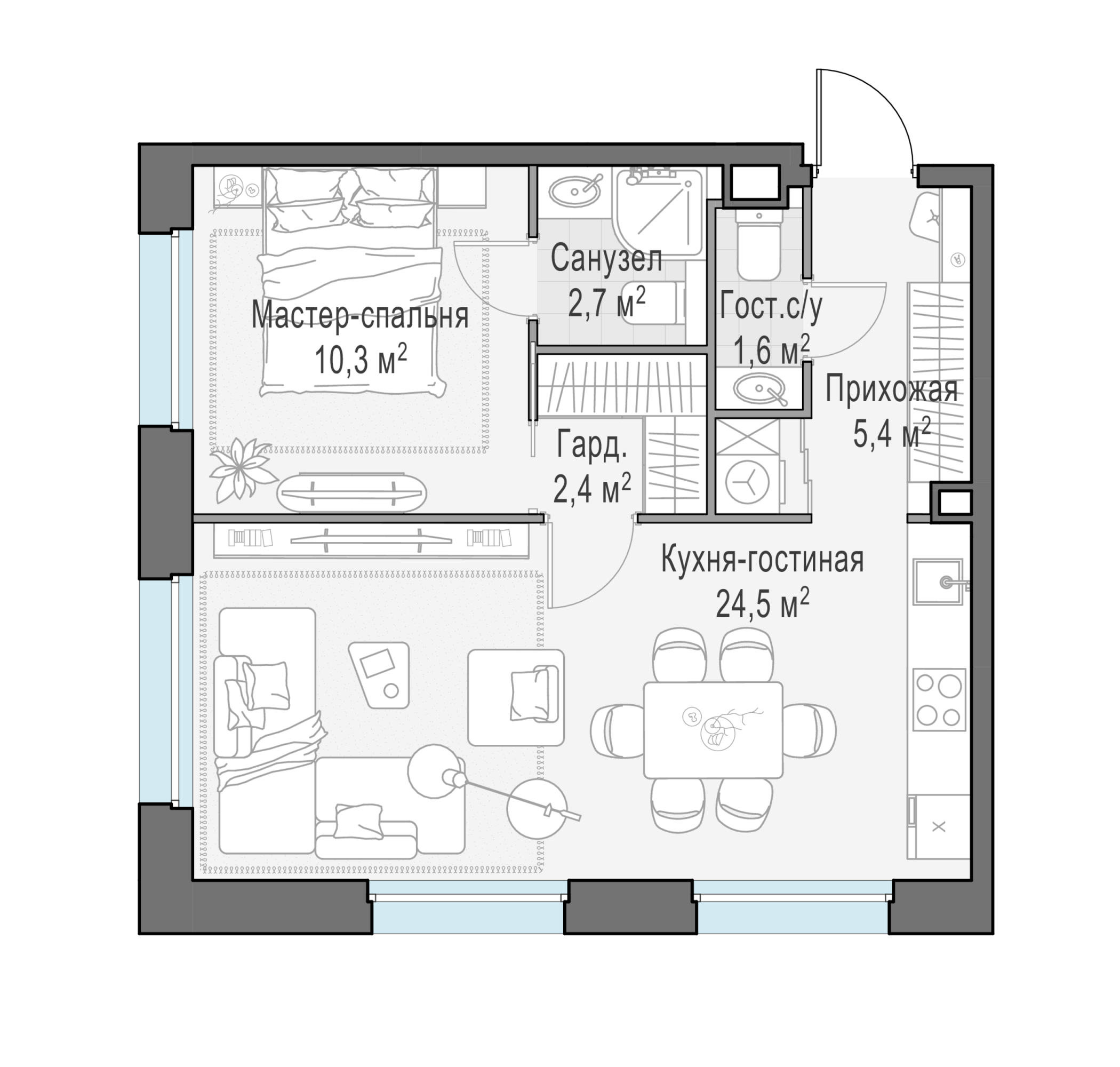 Представленные планировочные решения носят иллюстративный характер. Застройщик передаёт объект с планировкой, указанной в договоре участия в долевом строительстве. Любая перепланировка должна соответствовать требованиям государственных органов.