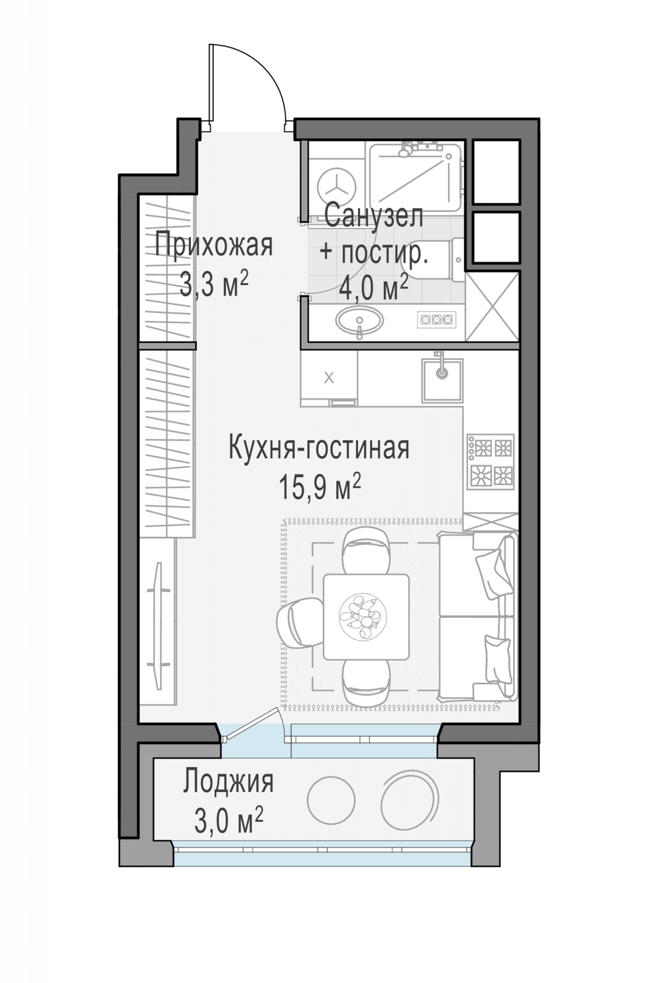 Студия, 24.6 м² №285