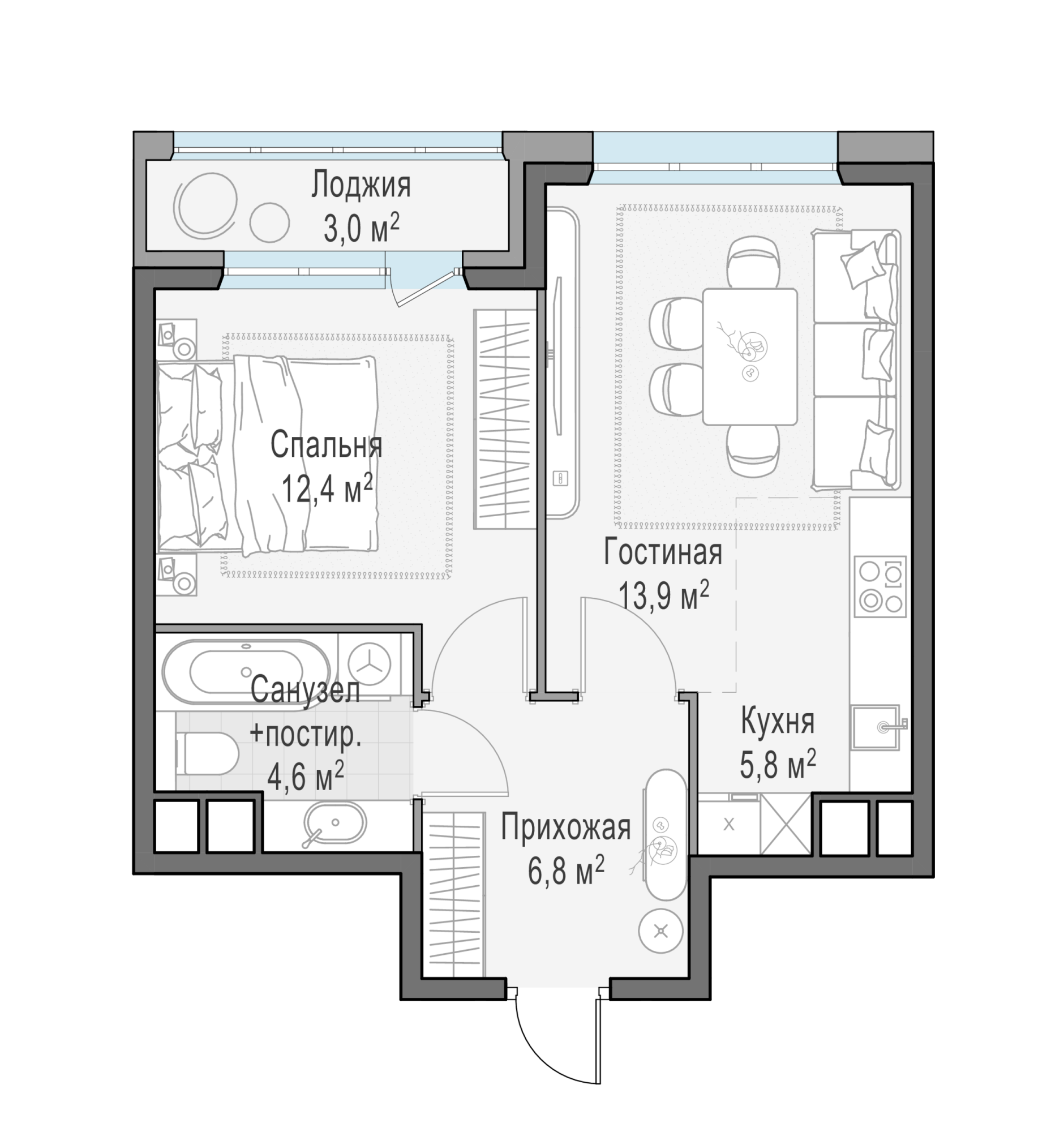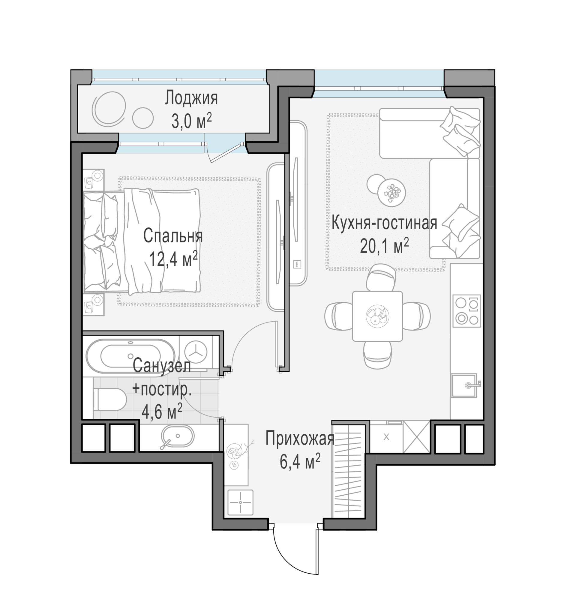 Представленные планировочные решения носят иллюстративный характер. Застройщик передаёт объект с планировкой, указанной в договоре участия в долевом строительстве. Любая перепланировка должна соответствовать требованиям государственных органов.