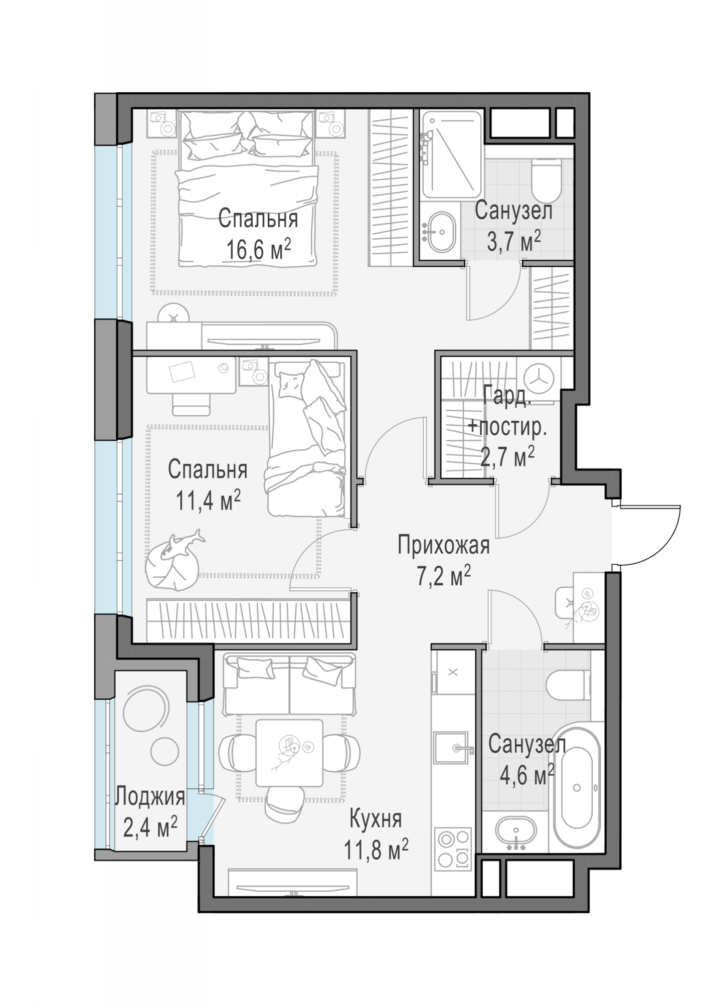 Представленные планировочные решения носят иллюстративный характер. Застройщик передаёт объект с планировкой, указанной в договоре участия в долевом строительстве. Любая перепланировка должна соответствовать требованиям государственных органов.