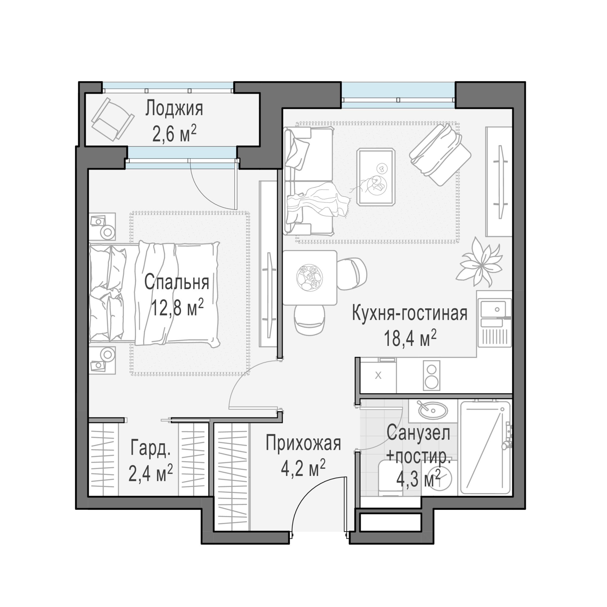 Представленные планировочные решения носят иллюстративный характер. Застройщик передаёт объект с планировкой, указанной в договоре участия в долевом строительстве. Любая перепланировка должна соответствовать требованиям государственных органов.