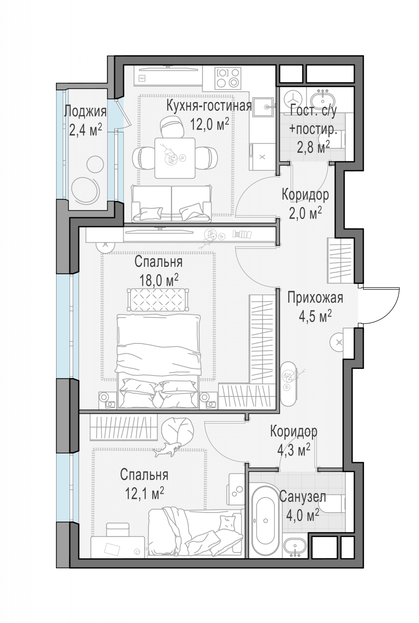 Представленные планировочные решения носят иллюстративный характер. Застройщик передаёт объект с планировкой, указанной в договоре участия в долевом строительстве. Любая перепланировка должна соответствовать требованиям государственных органов.