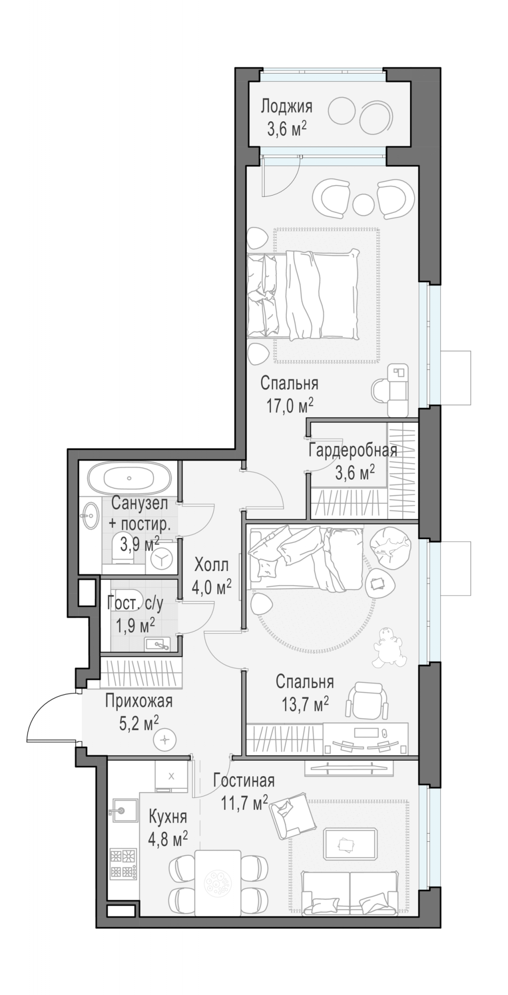 Представленные планировочные решения носят иллюстративный характер. Застройщик передаёт объект с планировкой, указанной в договоре участия в долевом строительстве. Любая перепланировка должна соответствовать требованиям государственных органов.