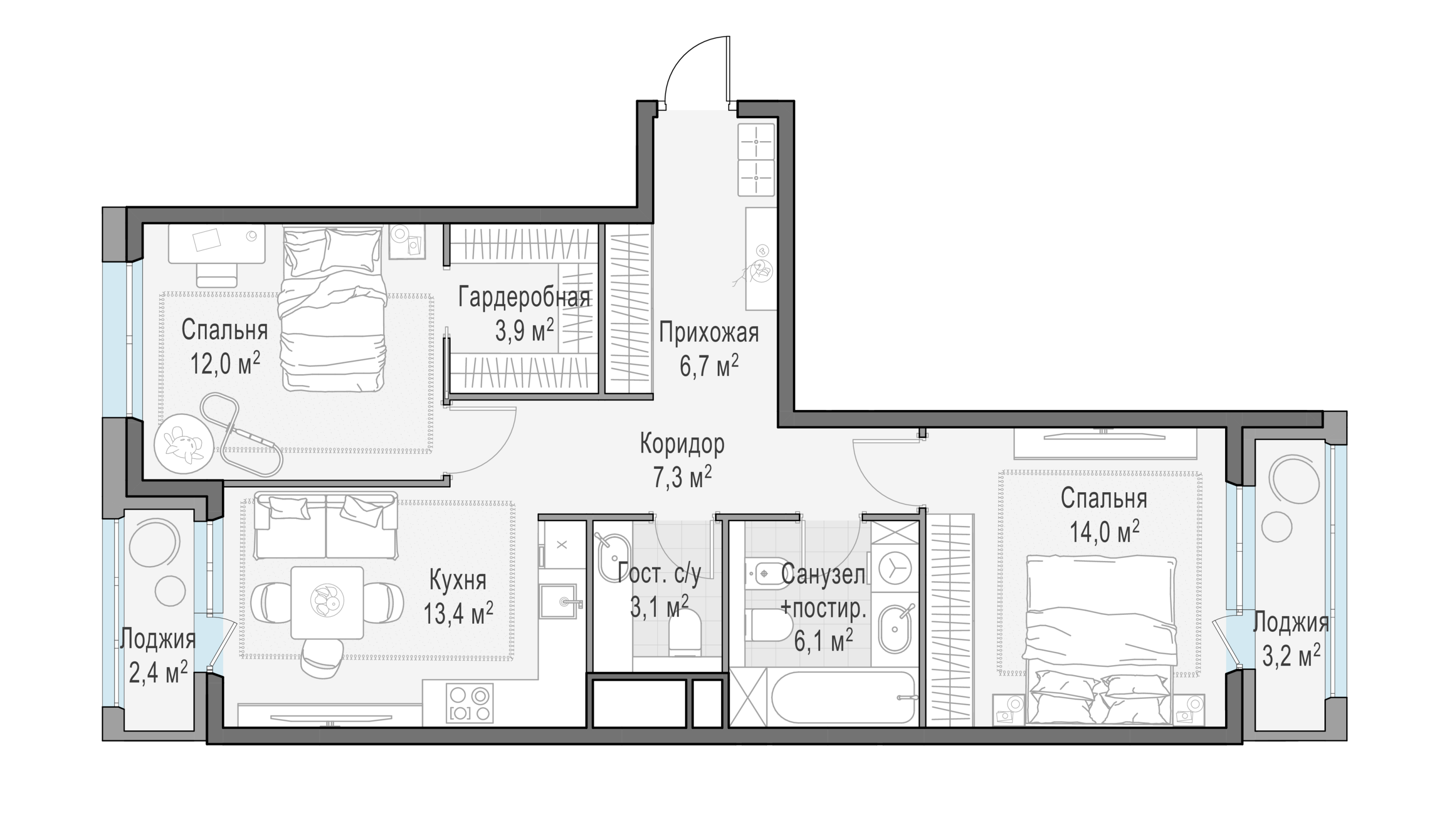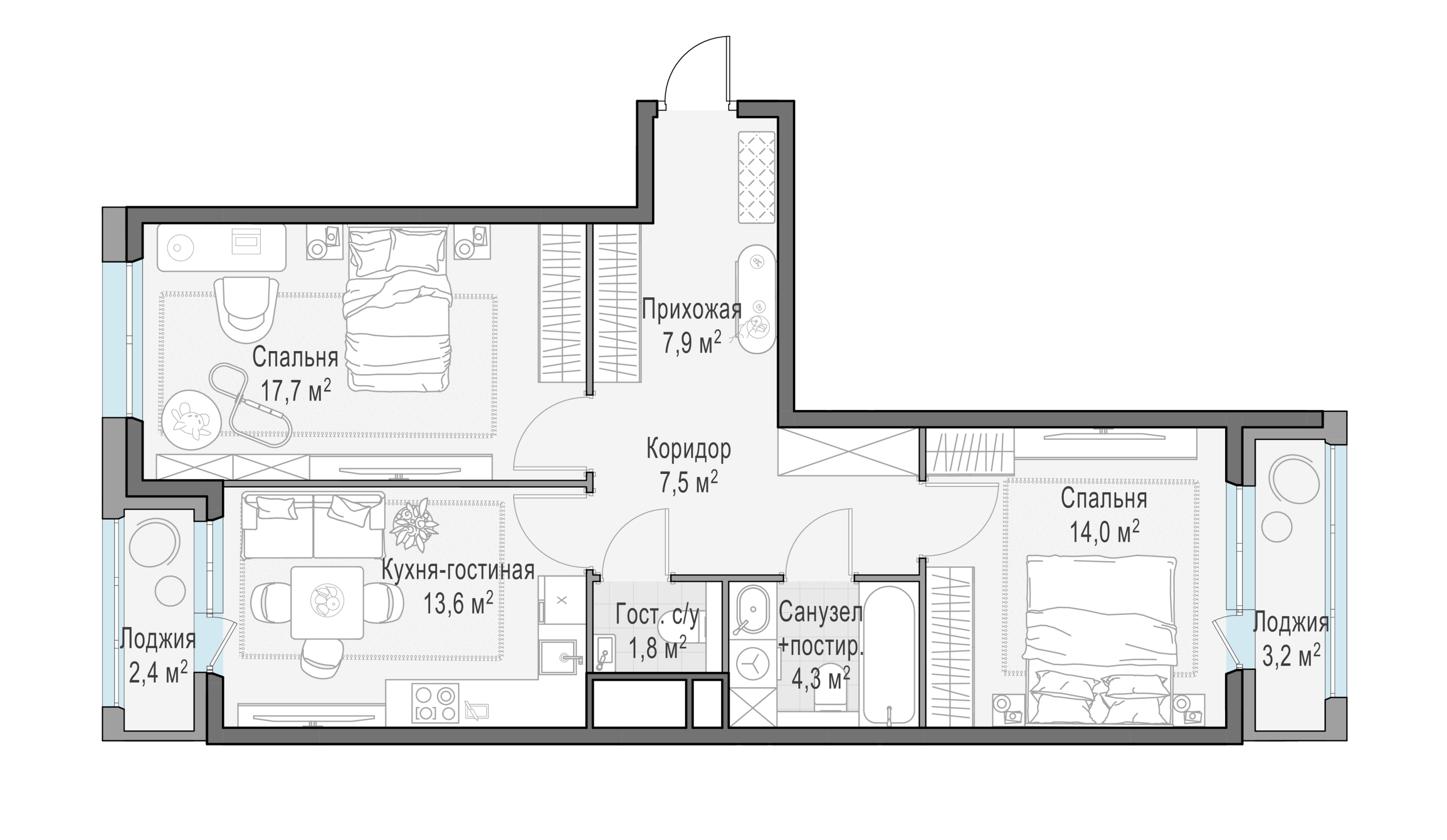 Представленные планировочные решения носят иллюстративный характер. Застройщик передаёт объект с планировкой, указанной в договоре участия в долевом строительстве. Любая перепланировка должна соответствовать требованиям государственных органов.