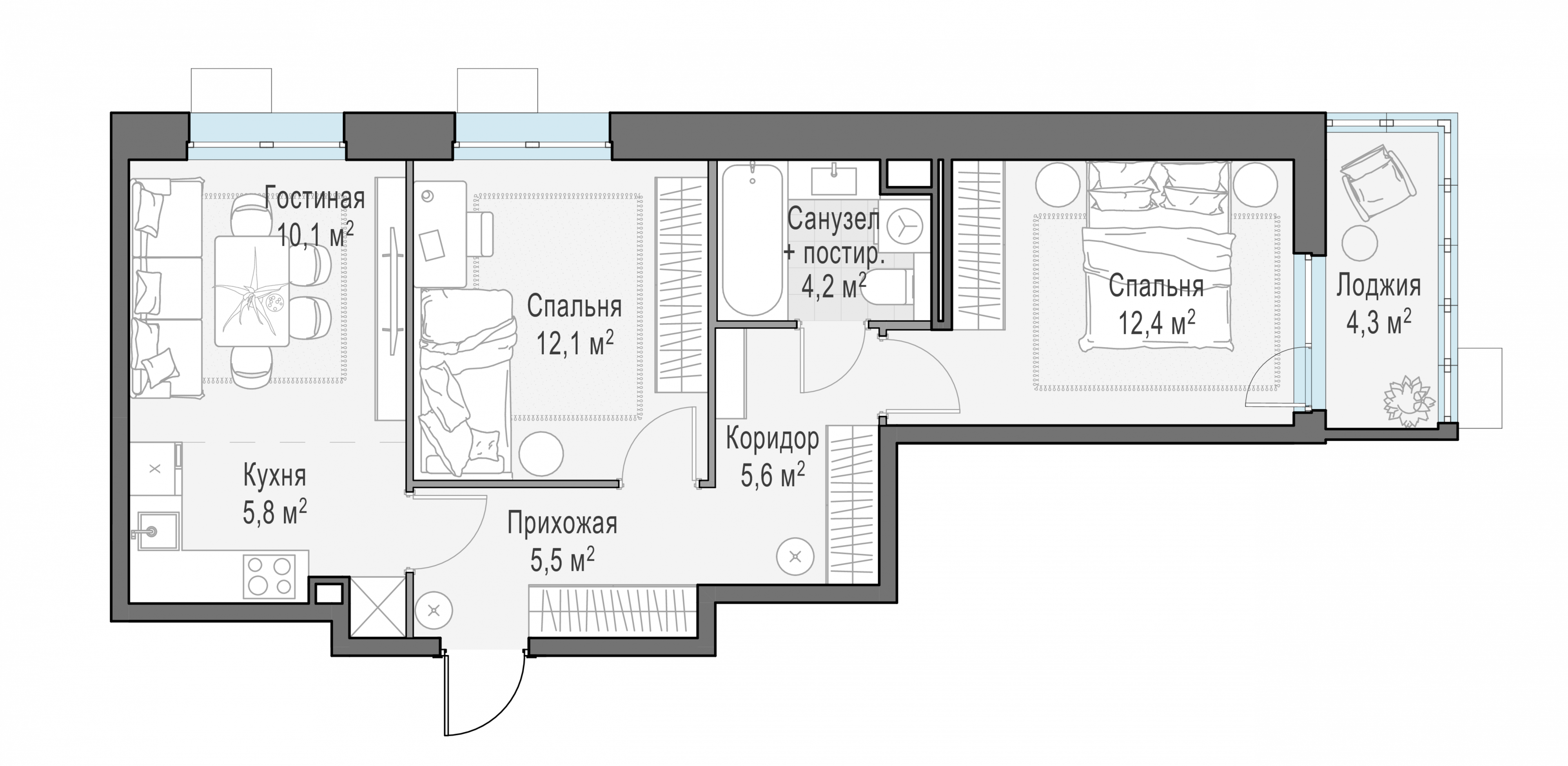 Представленные планировочные решения носят иллюстративный характер. Застройщик передаёт объект с планировкой, указанной в договоре участия в долевом строительстве. Любая перепланировка должна соответствовать требованиям государственных органов.