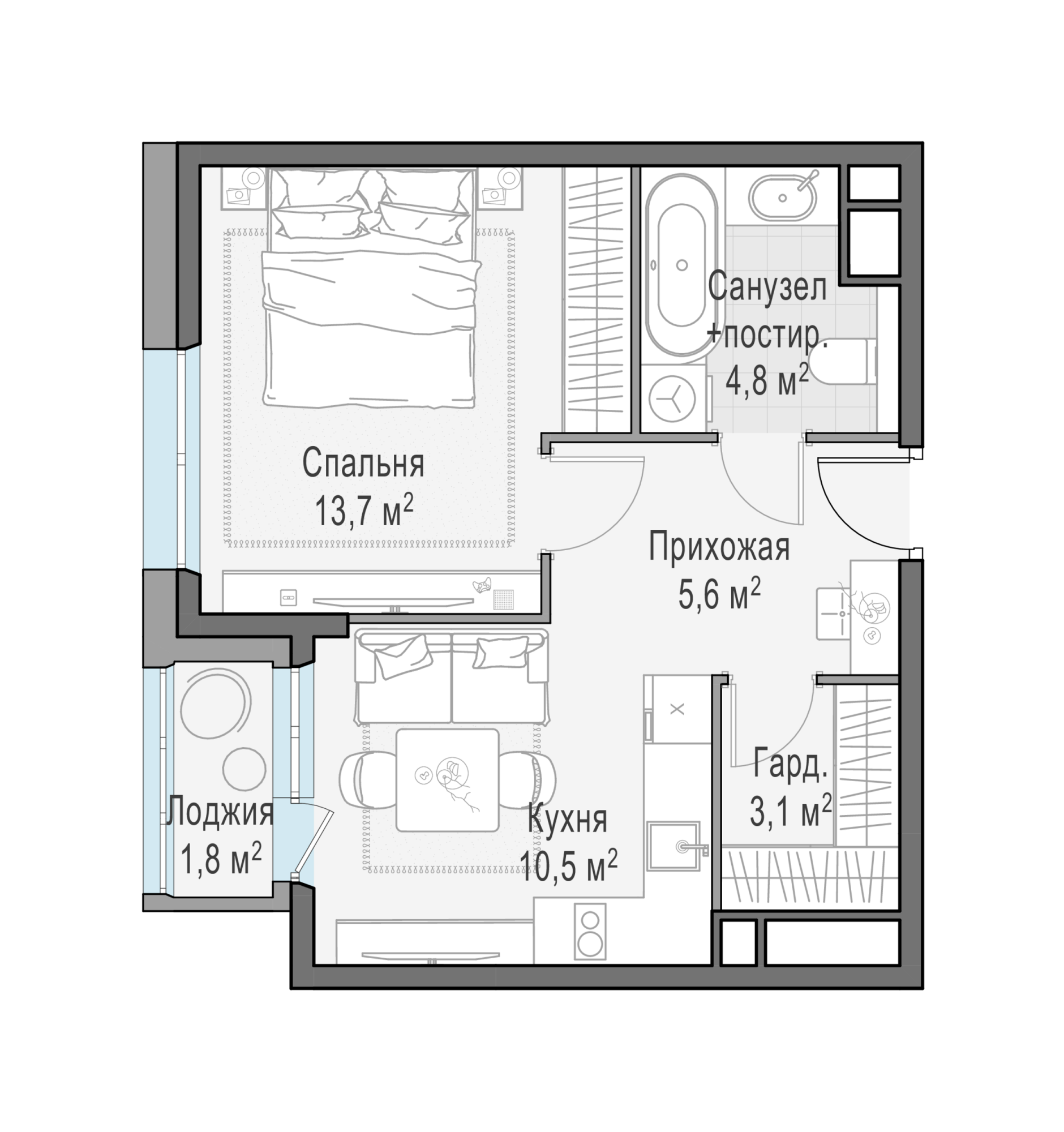 Представленные планировочные решения носят иллюстративный характер. Застройщик передаёт объект с планировкой, указанной в договоре участия в долевом строительстве. Любая перепланировка должна соответствовать требованиям государственных органов.