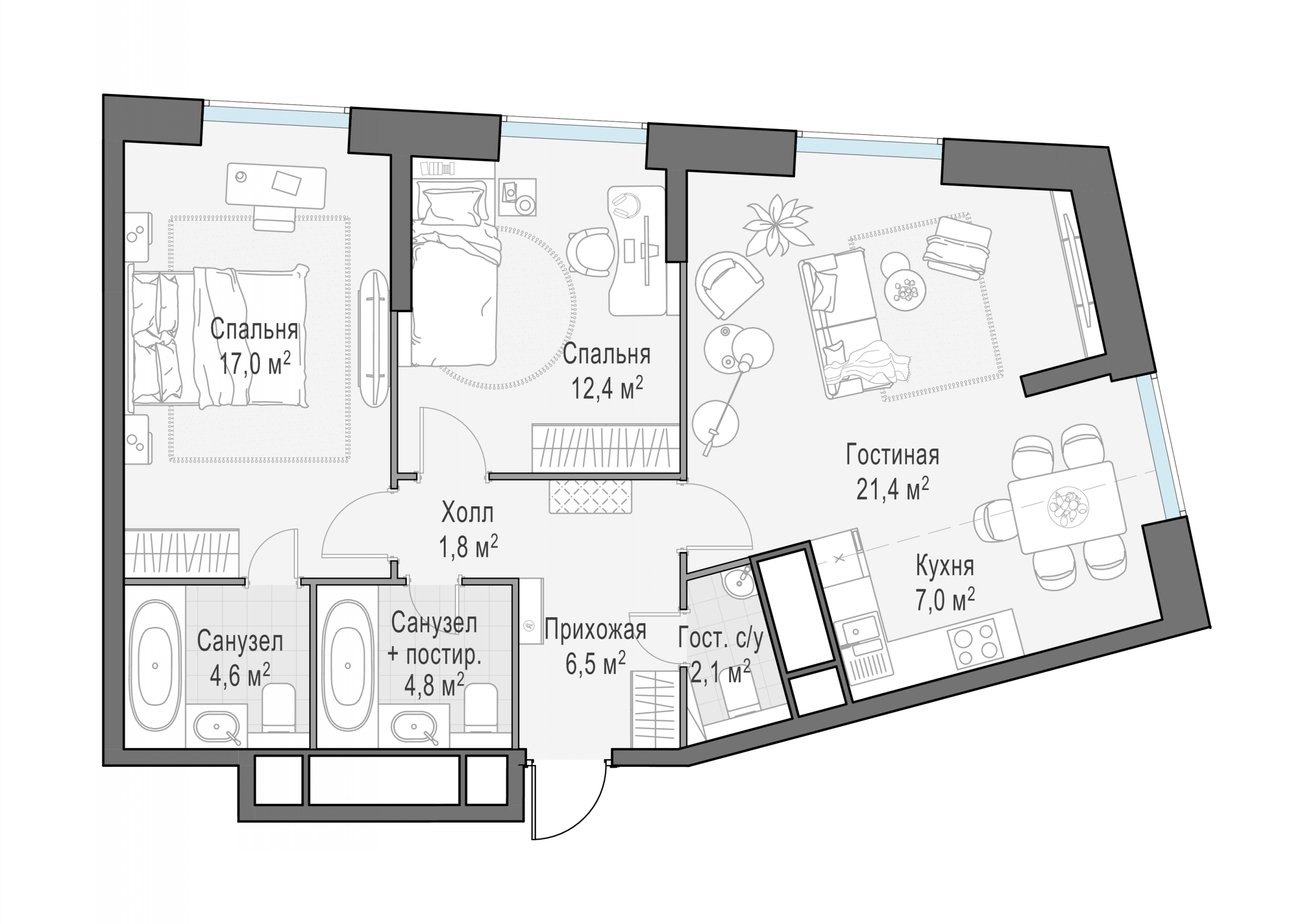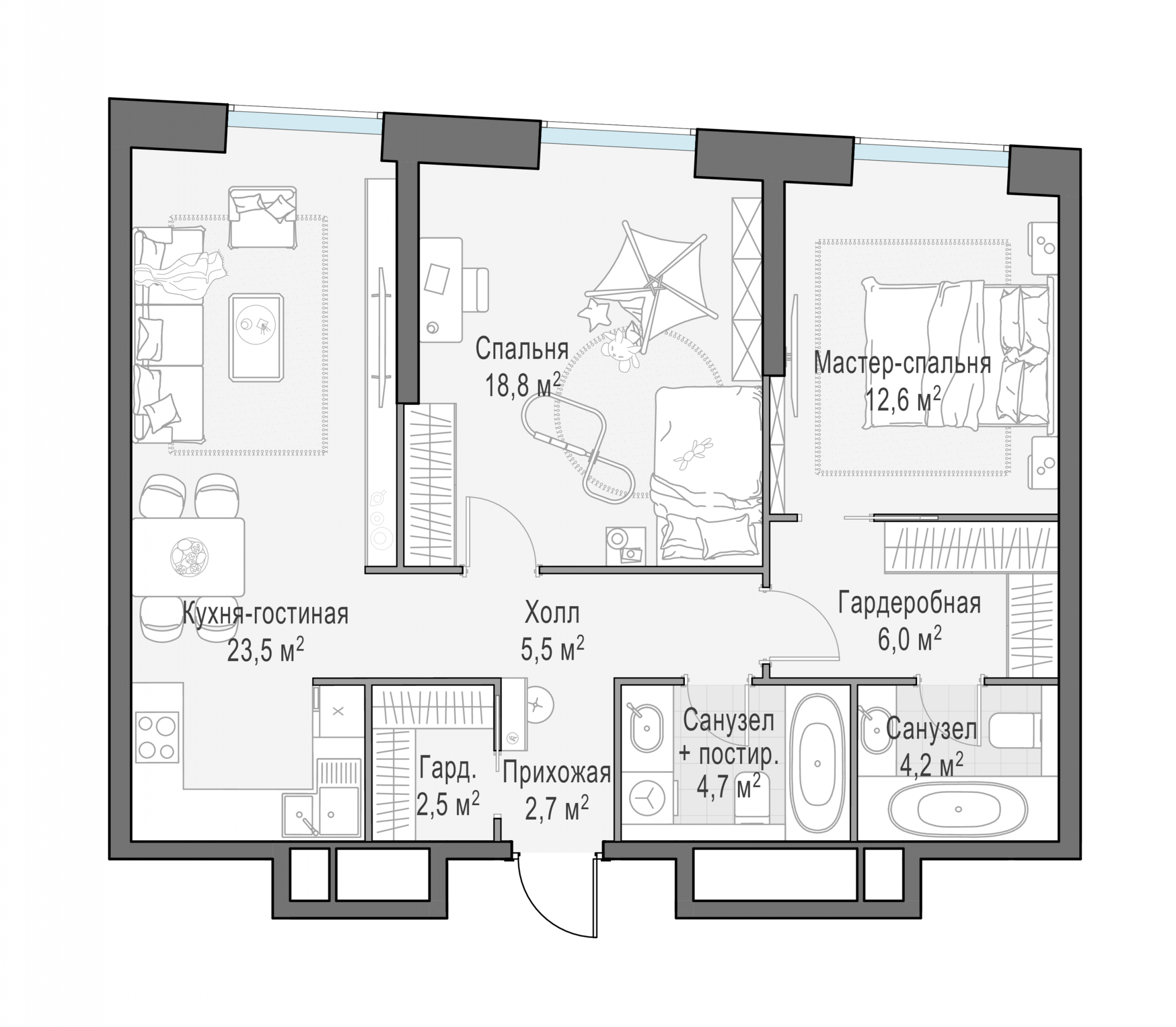 Представленные планировочные решения носят иллюстративный характер. Застройщик передаёт объект с планировкой, указанной в договоре участия в долевом строительстве. Любая перепланировка должна соответствовать требованиям государственных органов.