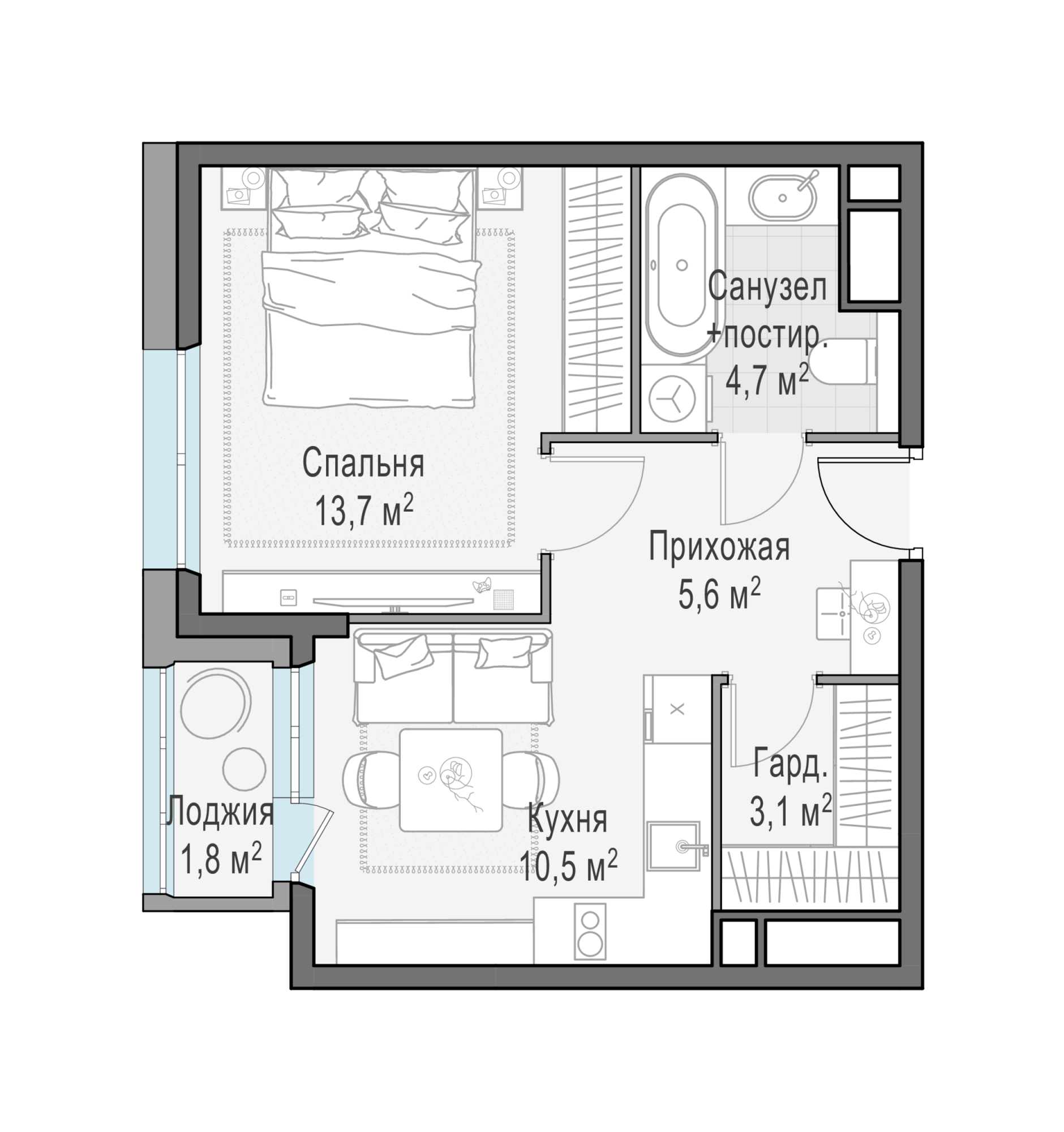Представленные планировочные решения носят иллюстративный характер. Застройщик передаёт объект с планировкой, указанной в договоре участия в долевом строительстве. Любая перепланировка должна соответствовать требованиям государственных органов.