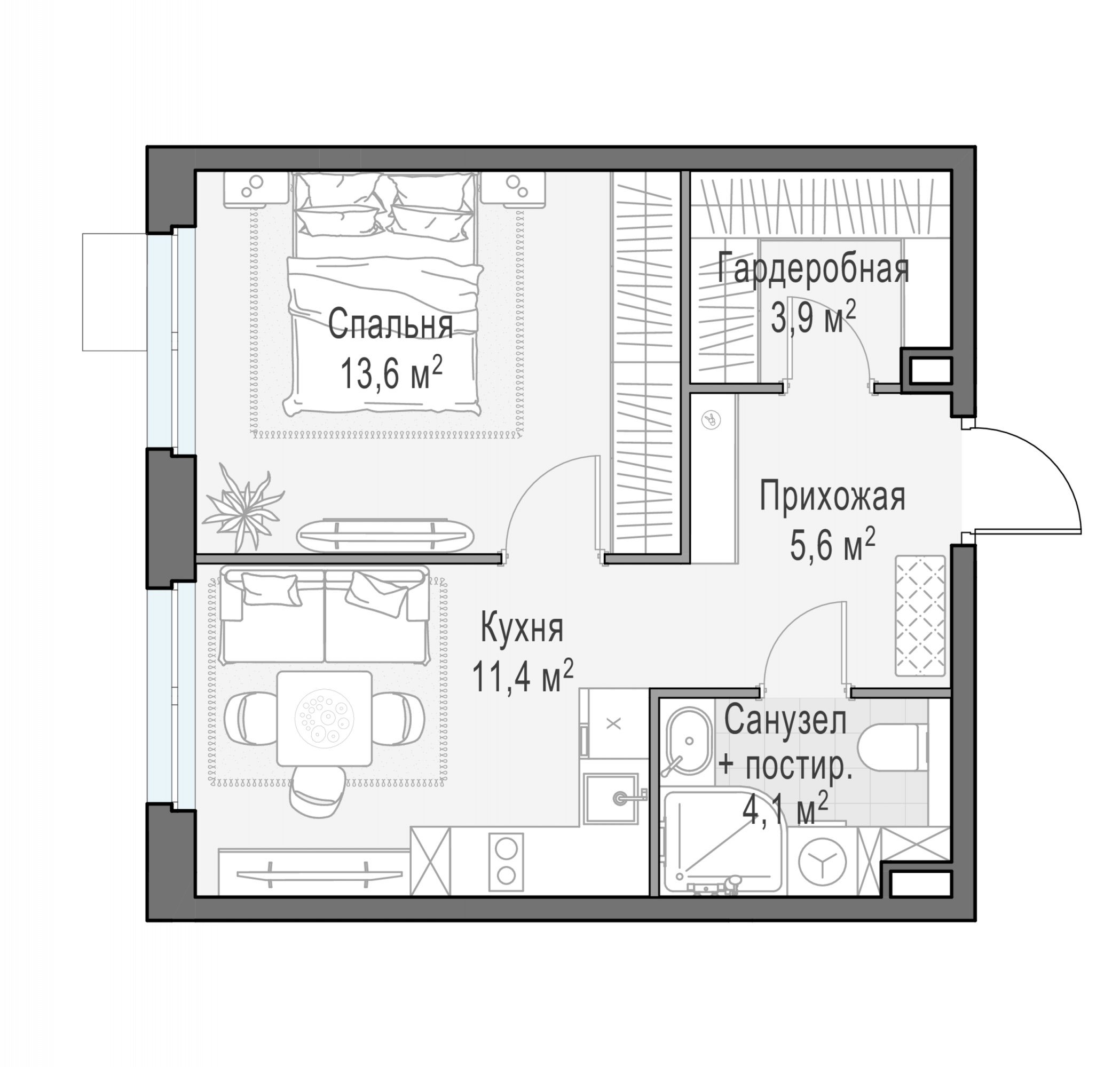 Представленные планировочные решения носят иллюстративный характер. Застройщик передаёт объект с планировкой, указанной в договоре участия в долевом строительстве. Любая перепланировка должна соответствовать требованиям государственных органов.
