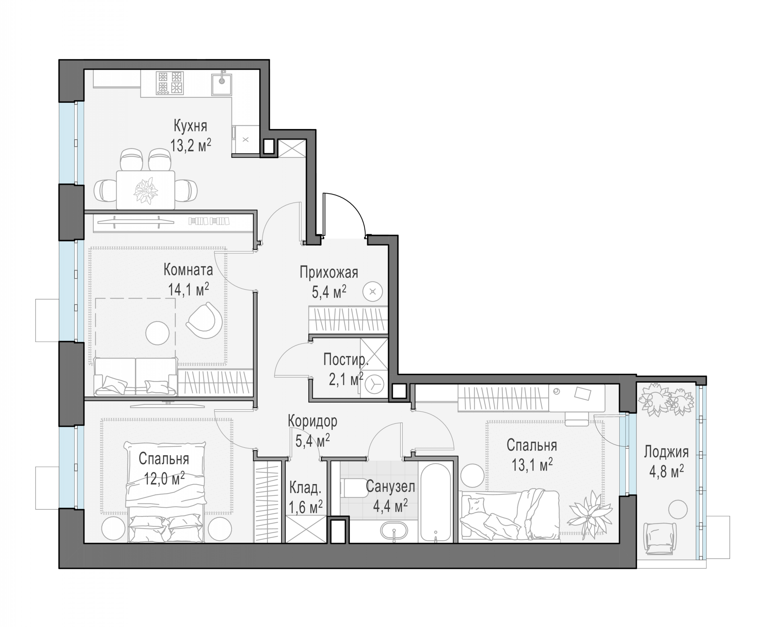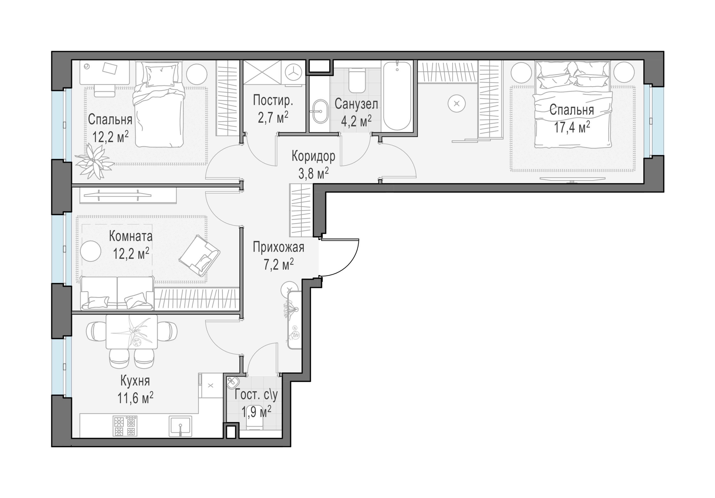 Представленные планировочные решения носят иллюстративный характер. Застройщик передаёт объект с планировкой, указанной в договоре участия в долевом строительстве. Любая перепланировка должна соответствовать требованиям государственных органов.