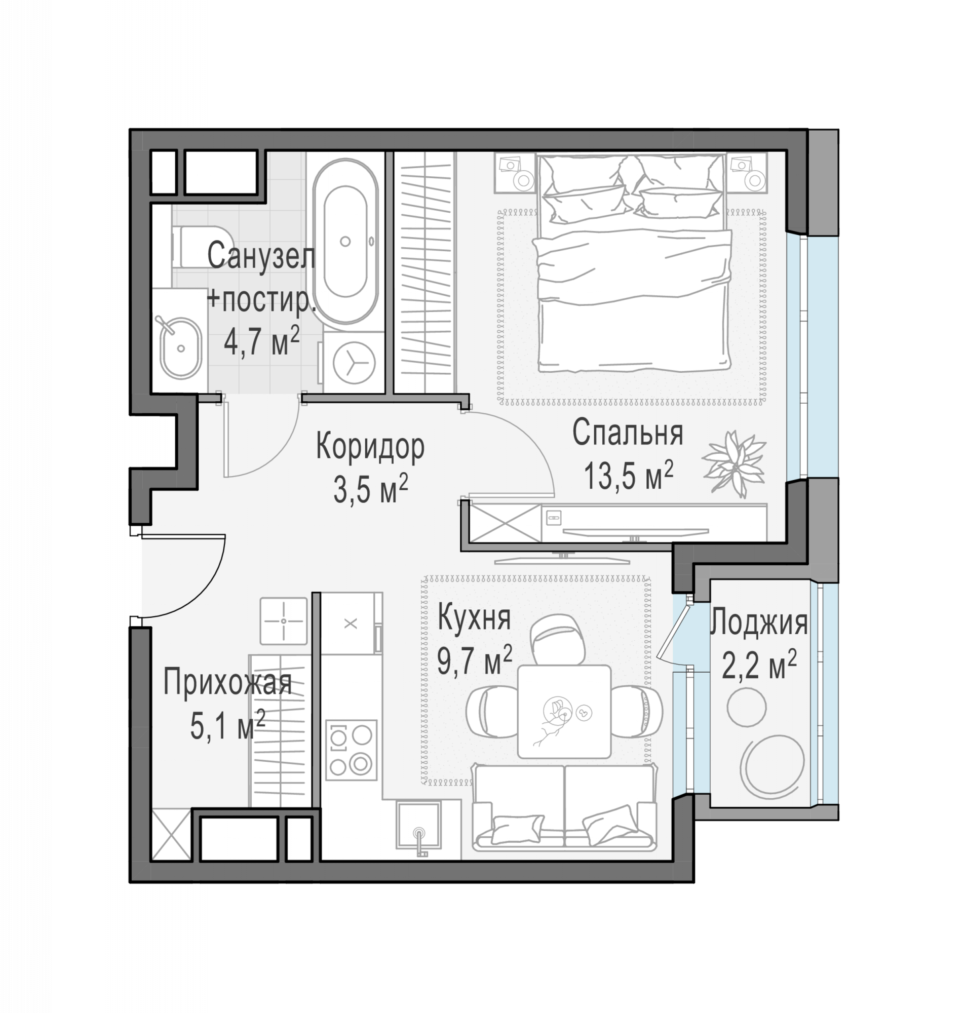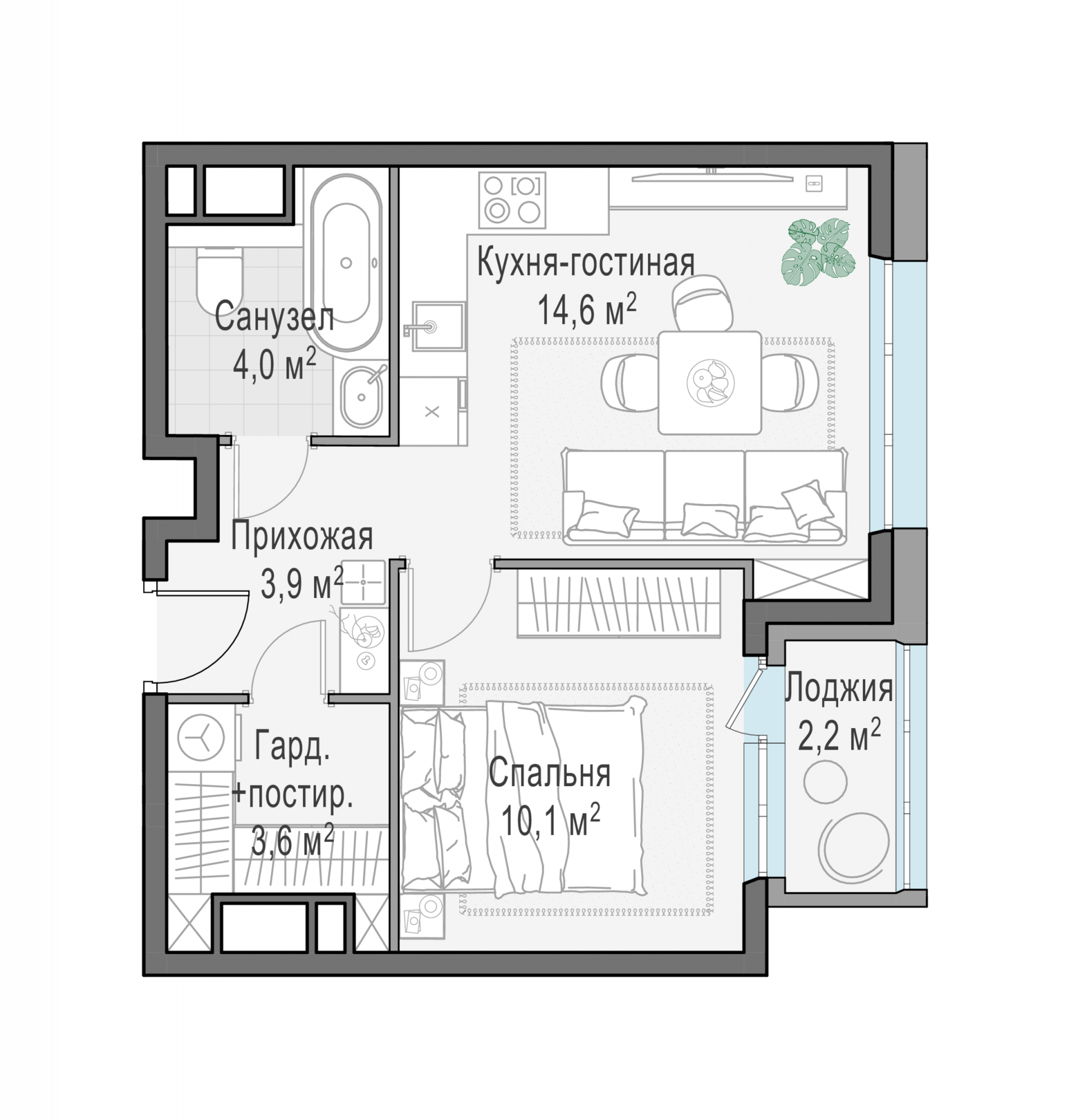 Представленные планировочные решения носят иллюстративный характер. Застройщик передаёт объект с планировкой, указанной в договоре участия в долевом строительстве. Любая перепланировка должна соответствовать требованиям государственных органов.