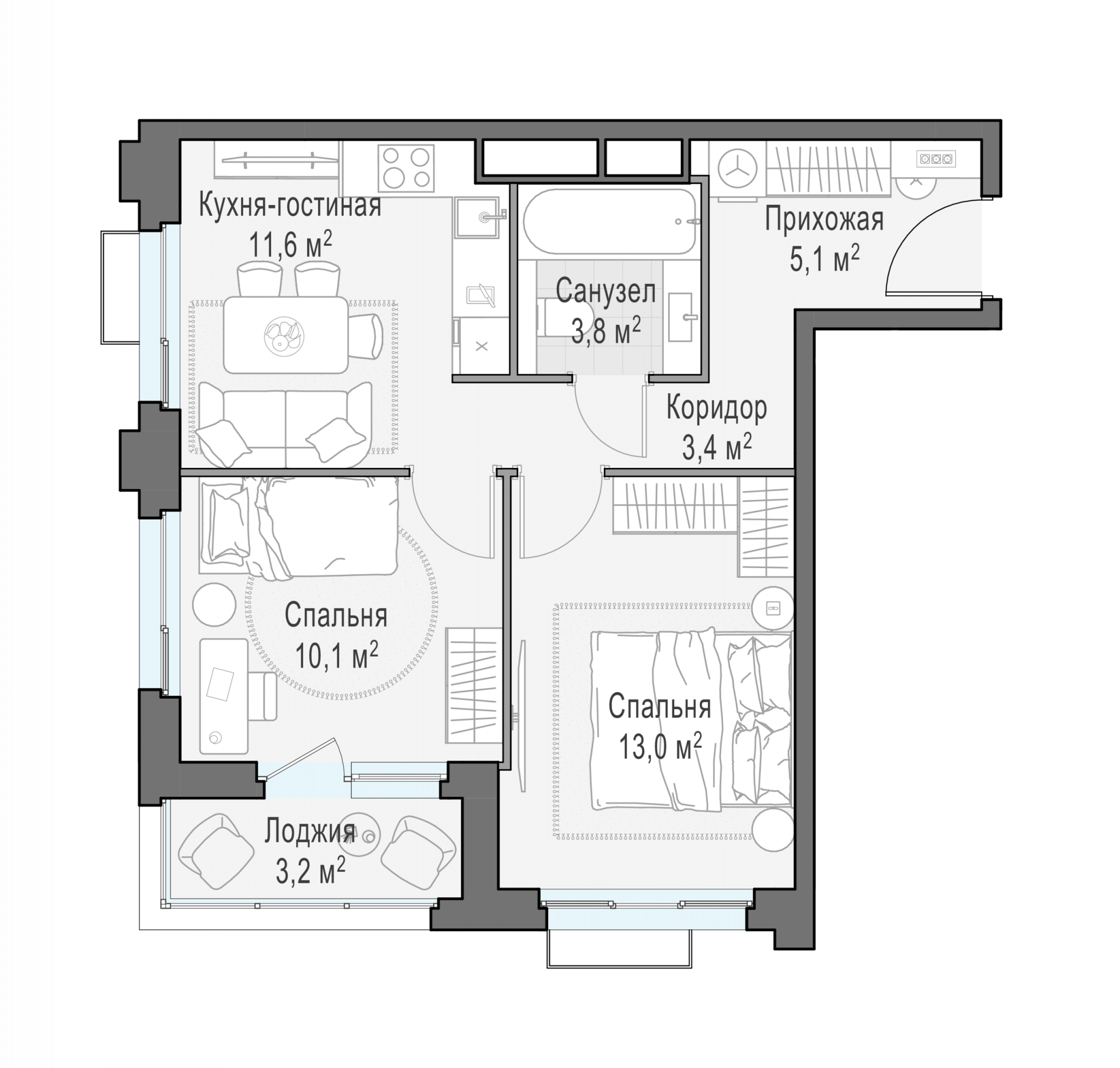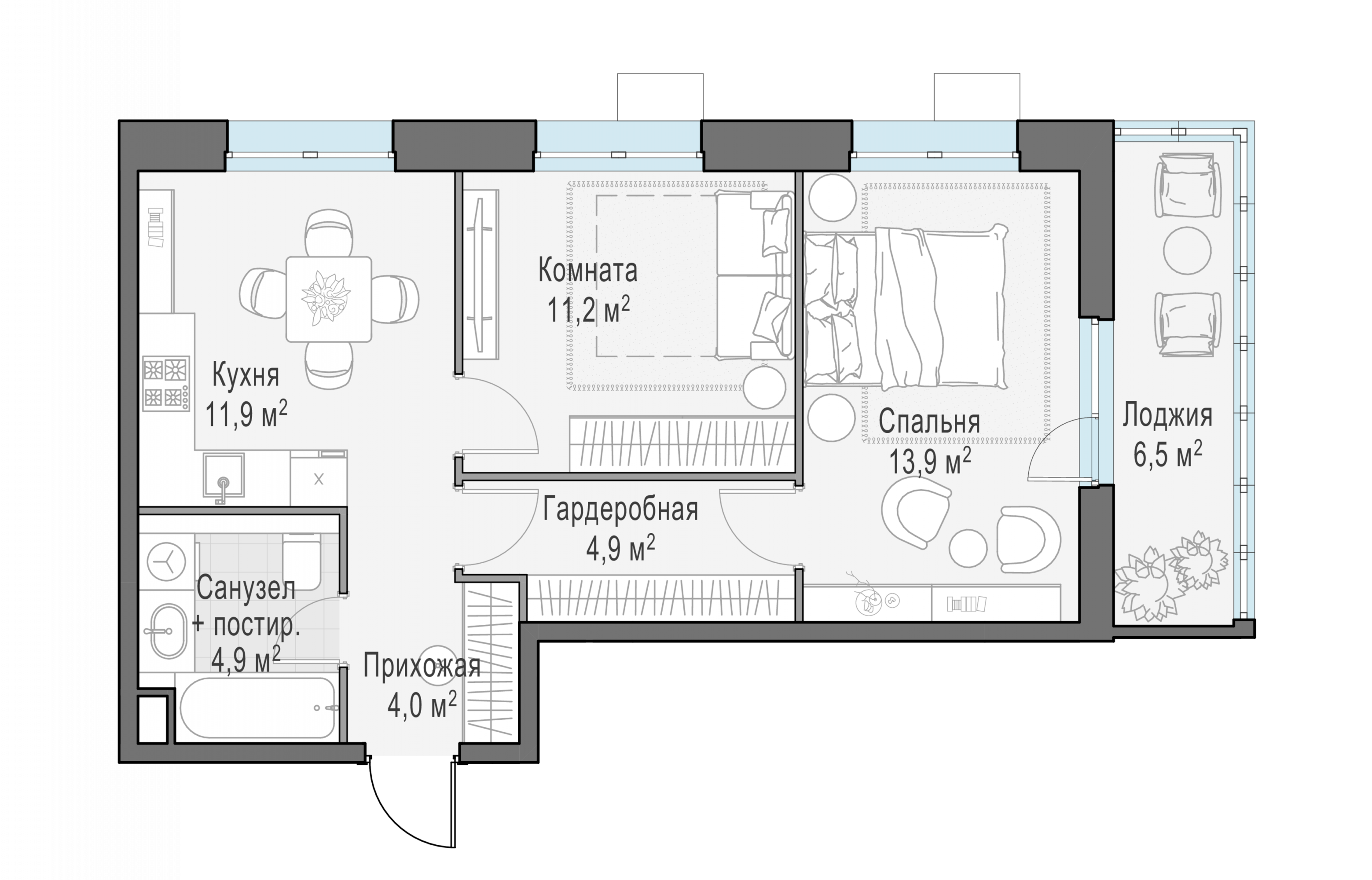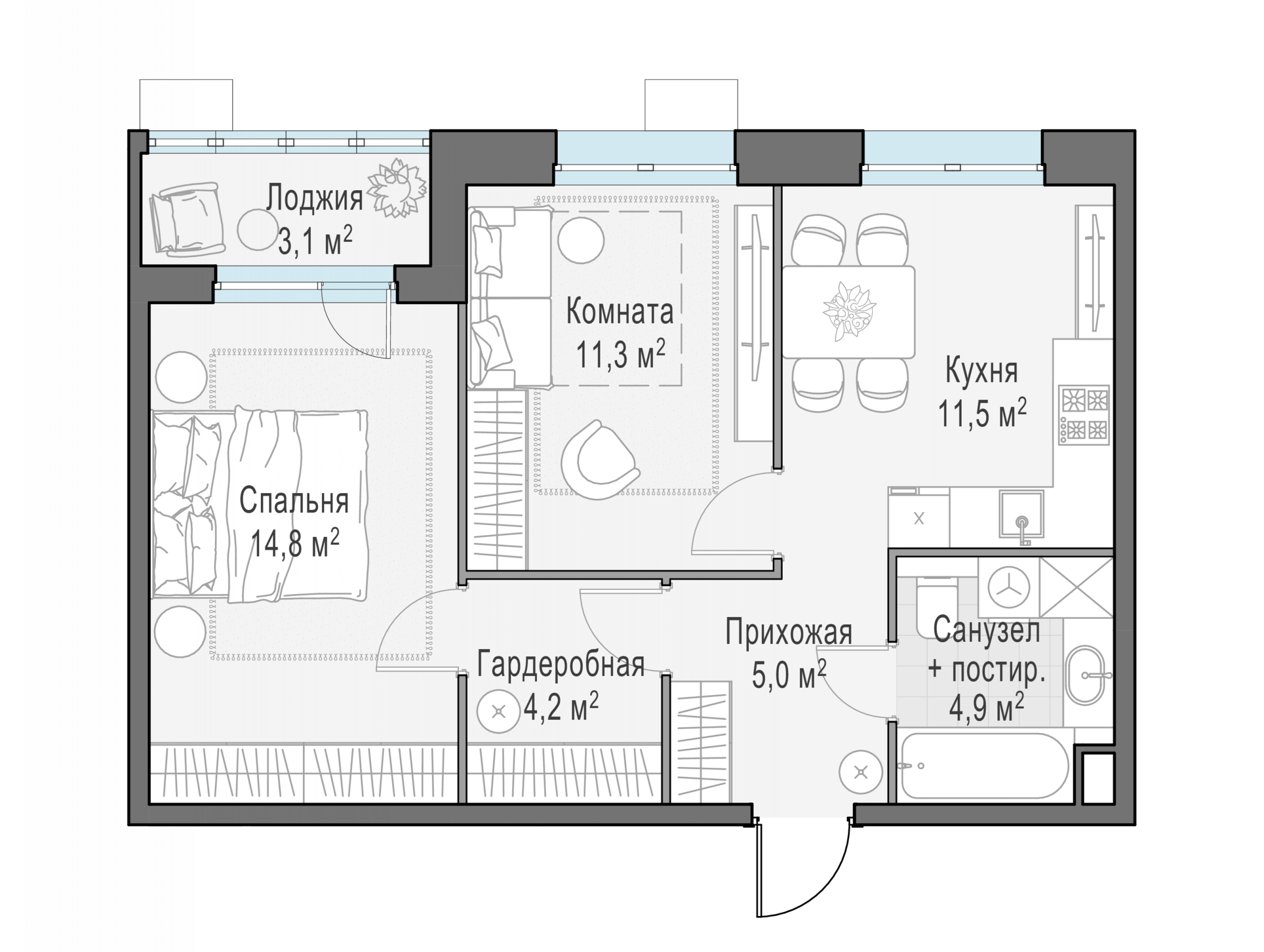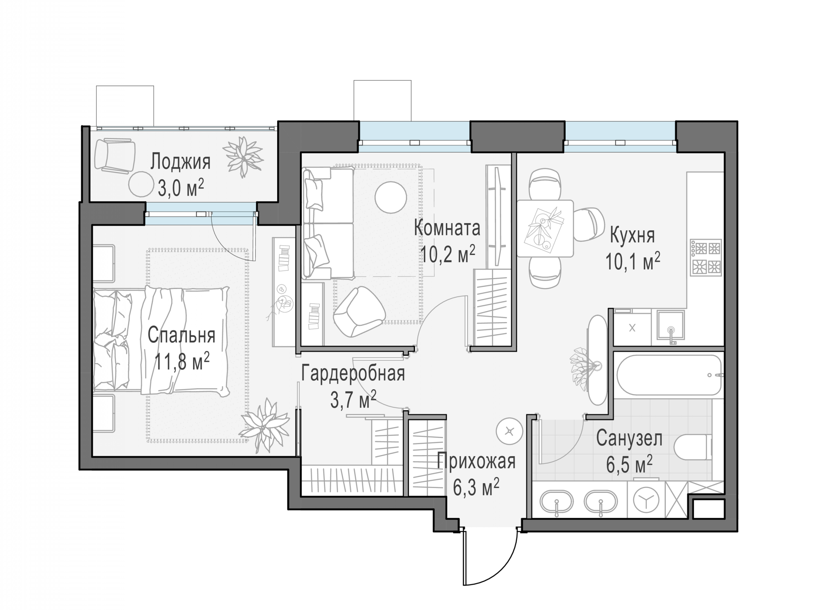 Представленные планировочные решения носят иллюстративный характер. Застройщик передаёт объект с планировкой, указанной в договоре участия в долевом строительстве. Любая перепланировка должна соответствовать требованиям государственных органов.