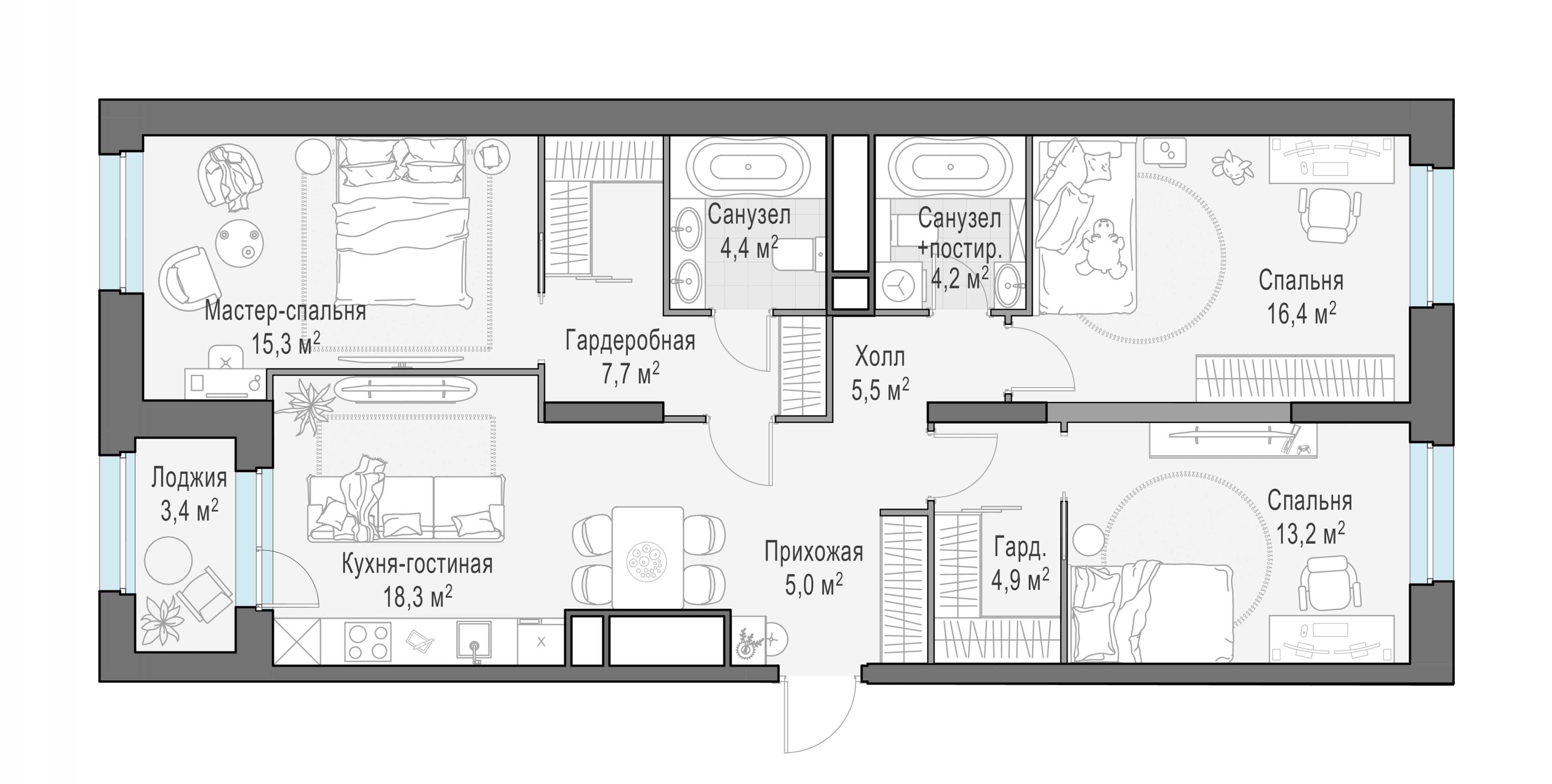 Представленные планировочные решения носят иллюстративный характер. Застройщик передаёт объект с планировкой, указанной в договоре участия в долевом строительстве. Любая перепланировка должна соответствовать требованиям государственных органов.